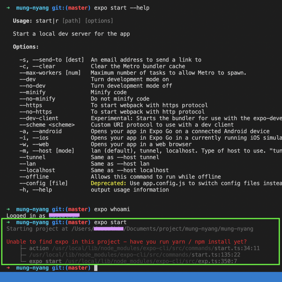 react native/mac Unable to find expo in this project - have you run yarn / npm install yet?
