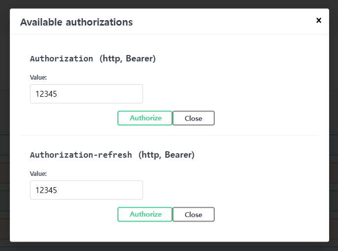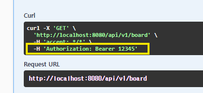 이제 Authorize 초록색 버튼을 눌러 열린 창에 token을 입력 후 Authorize 버튼을 누르고, api request를 보내면 header가 추가된 것을 볼 수 있다!